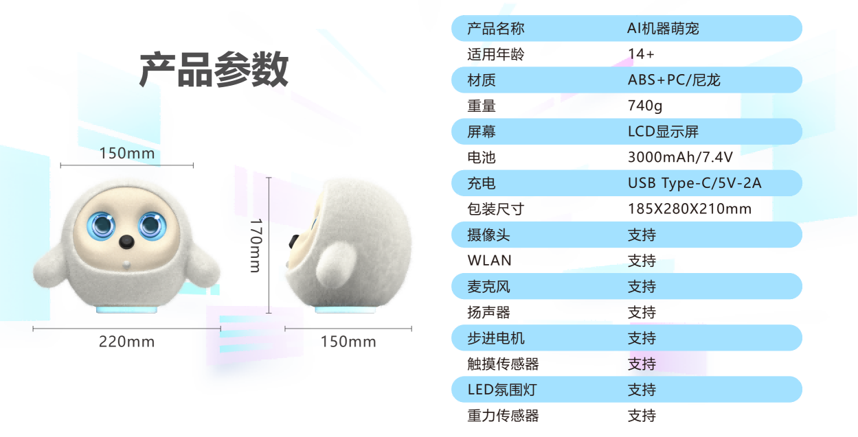 एआय रोबोटिक पेट हा एक भावनिक सहचर मूर्त स्वरूप असलेला रोबोट आहे जो मल्टीमोडल मोठ्या मॉडेलद्वारे समर्थित आहे. हे प्रगत पर्यावरणीय धारणा तंत्रज्ञान आणि व्यक्तिमत्व भावनिक अभिव्यक्ती यांना खोलवर समाकलित करते, वापरकर्त्यांना भावनिक मूल्य आणि उबदार साहचर्य प्रदान करण्याचे उद्दिष्ट ठेवते जे सूक्ष्म आणि ग्रहणक्षम भावनिक परस्परसंवादाद्वारे उपयुक्ततावादी कार्यक्षमतेच्या पलीकडे जाते.